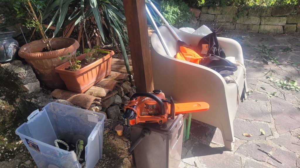 Sitten olikin hiljaista. Parin päivän päästä sain vihdoin yhteydenoton paikalliselta arboristilta, joka lupasi tulla paikan päälle katsomaan tilannetta ja tekemään tarjouksen. Kommunikaatio onnistui yllättäen näppärästi WhatsAppilla. Hinnasta päästiin sopuun, ja se oli edelliseen tarjoukseen verrattuna yli 90 % edullisempi. Puutarhurointi alkoi seuraavana päivänä, melko tehokasta siis.
